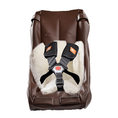 Peuterschaal voor fietskar met leren bekleding en extra steun.